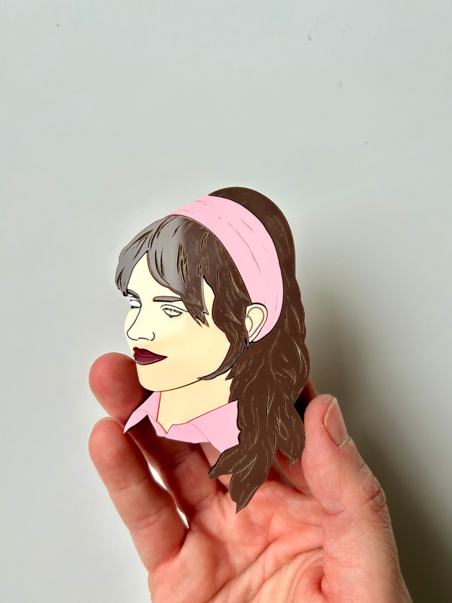 Brooch features metal bar pin with swivel clasp. Inspired by the iconic film Companion.